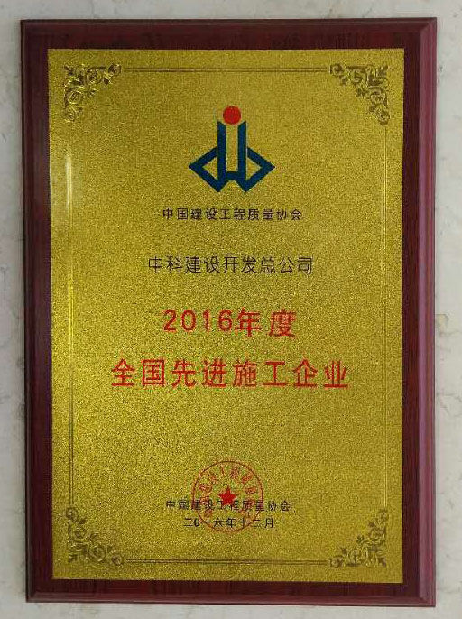 2016年度全国先进施工企业荣誉证书